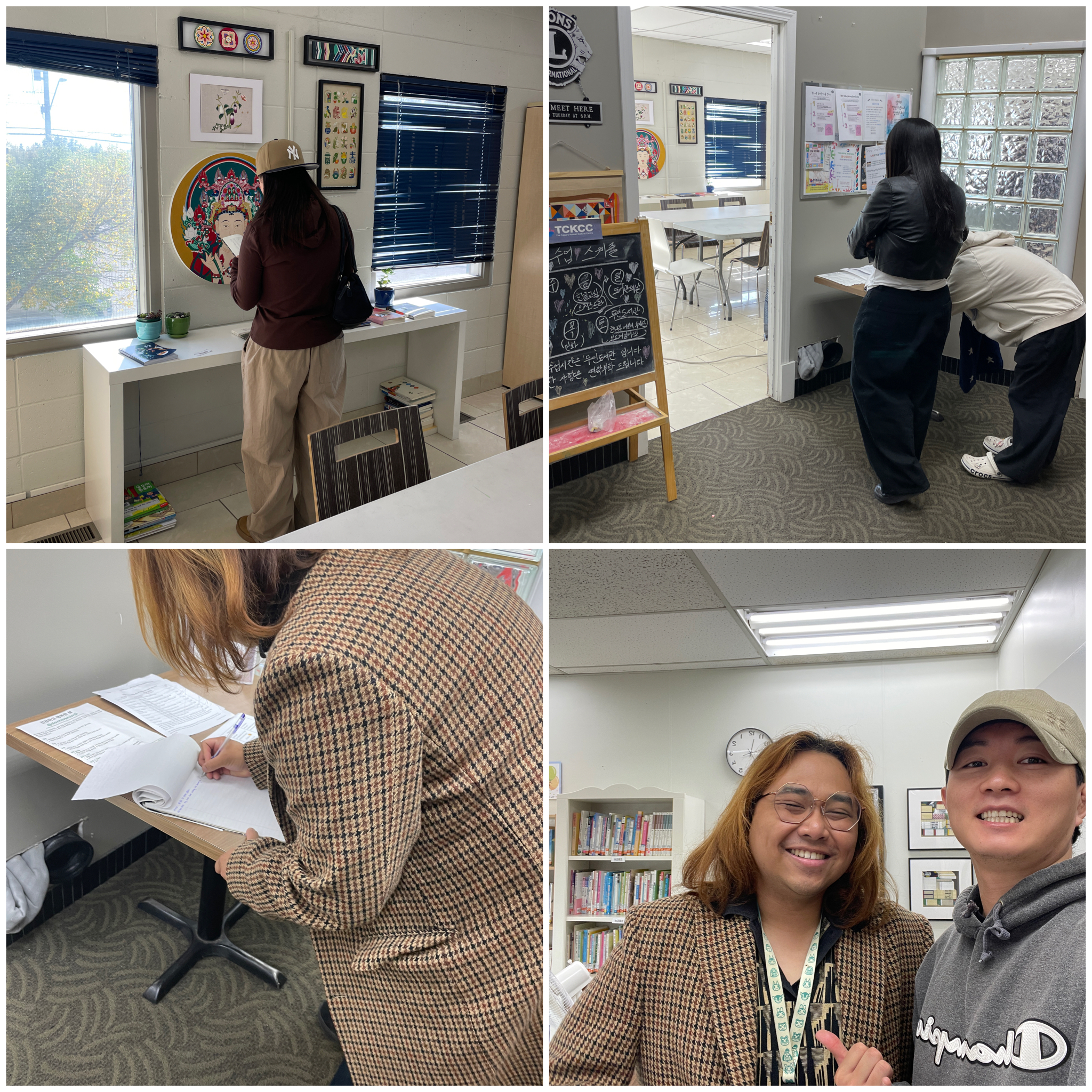 T는 메인 도서관이 더운지 기자단분들의 의견을 물은 뒤 메인 홀에 자리를 만들었다